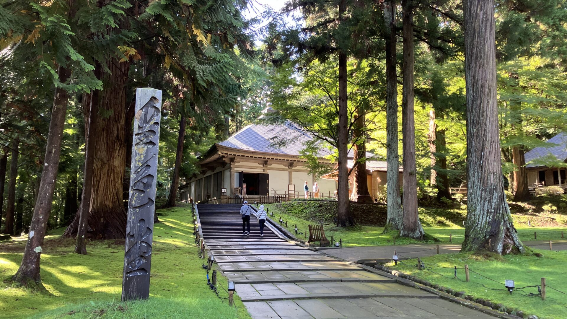 最初に中尊寺までバスを利用すれば、その他の観光地へのアクセスは下り坂あるいは平坦な道になります。