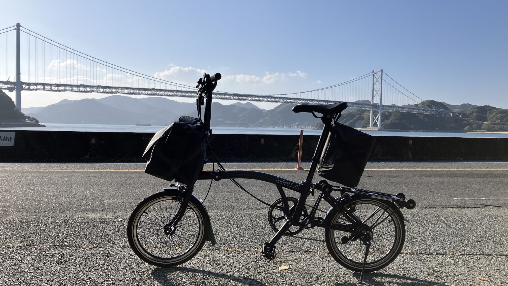 しまなみ海道の橋の上で撮影したBROMPTONの画像